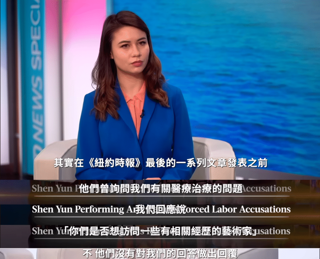 節目29:04分提到了紐約時報對於神韻醫術團提出醫療問題相關提問,而當藝術團主動提出採訪團內藝術家的回應時,該報並沒有回應並後續直接發佈了報導內容。